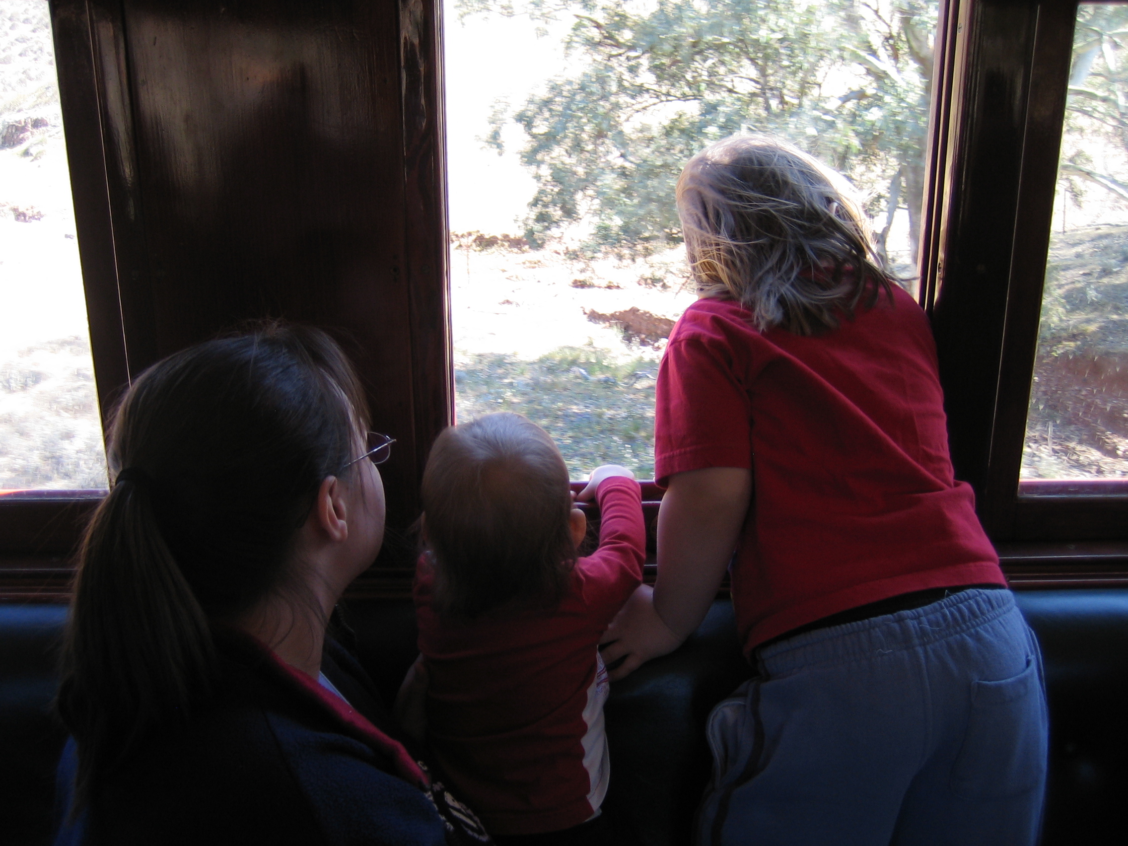 Me, Mum and Emily looking out the window of the Pichi Richi on 16 Sep 2007