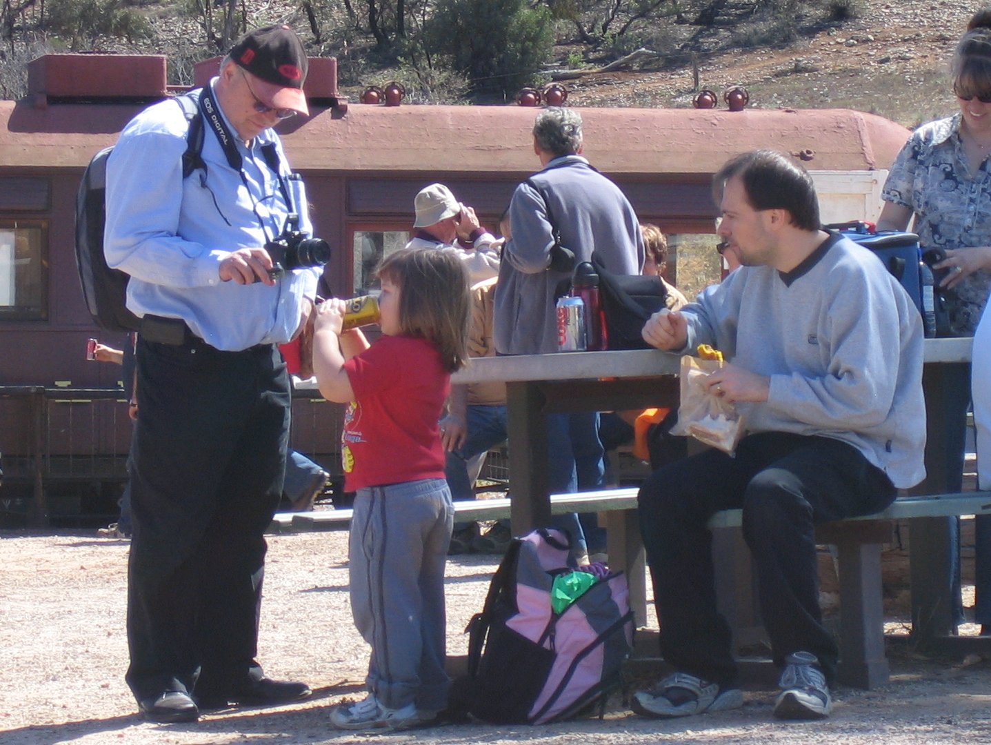 Me, Dad and Grandpa at the food stop for the train ride on 16 Sep 2007