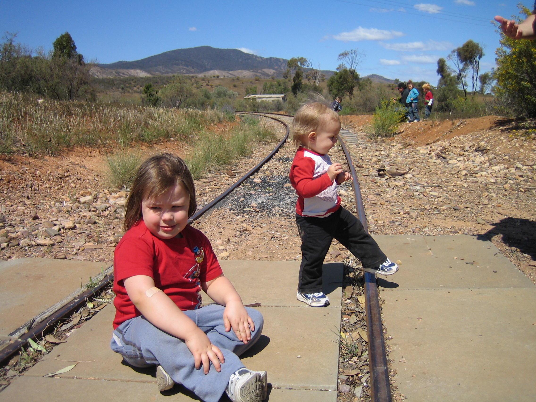 Me and Emily playing on the tracks on 13 Sep 2007
