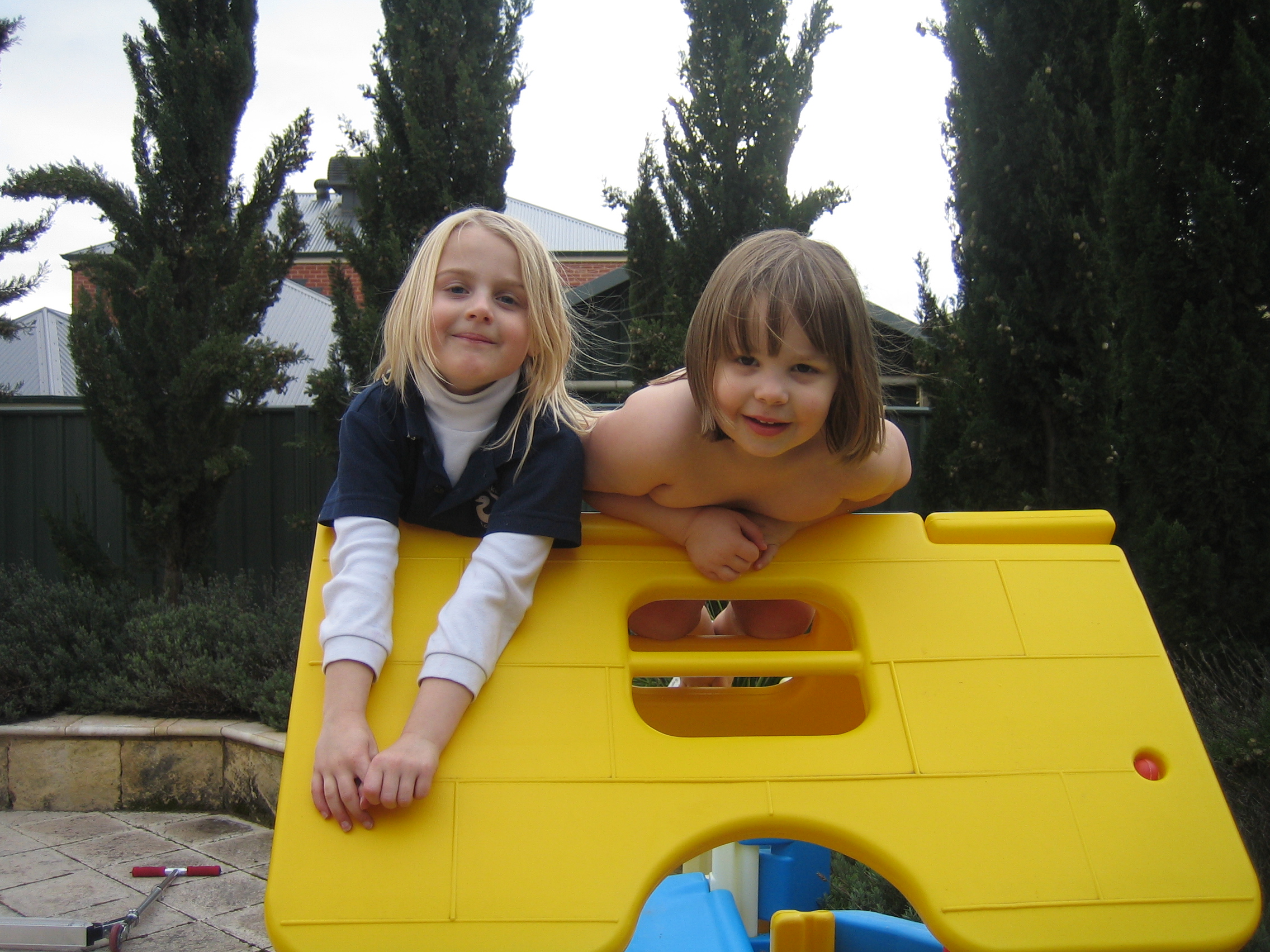 Me and Jordan at the top of my cubby house on 8 Aug 2007
