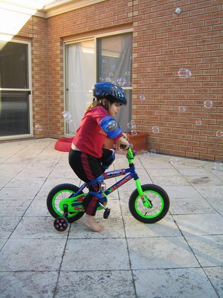 Me riding my bike in the bubbles (with full protective gear) on 13 Aug 2007