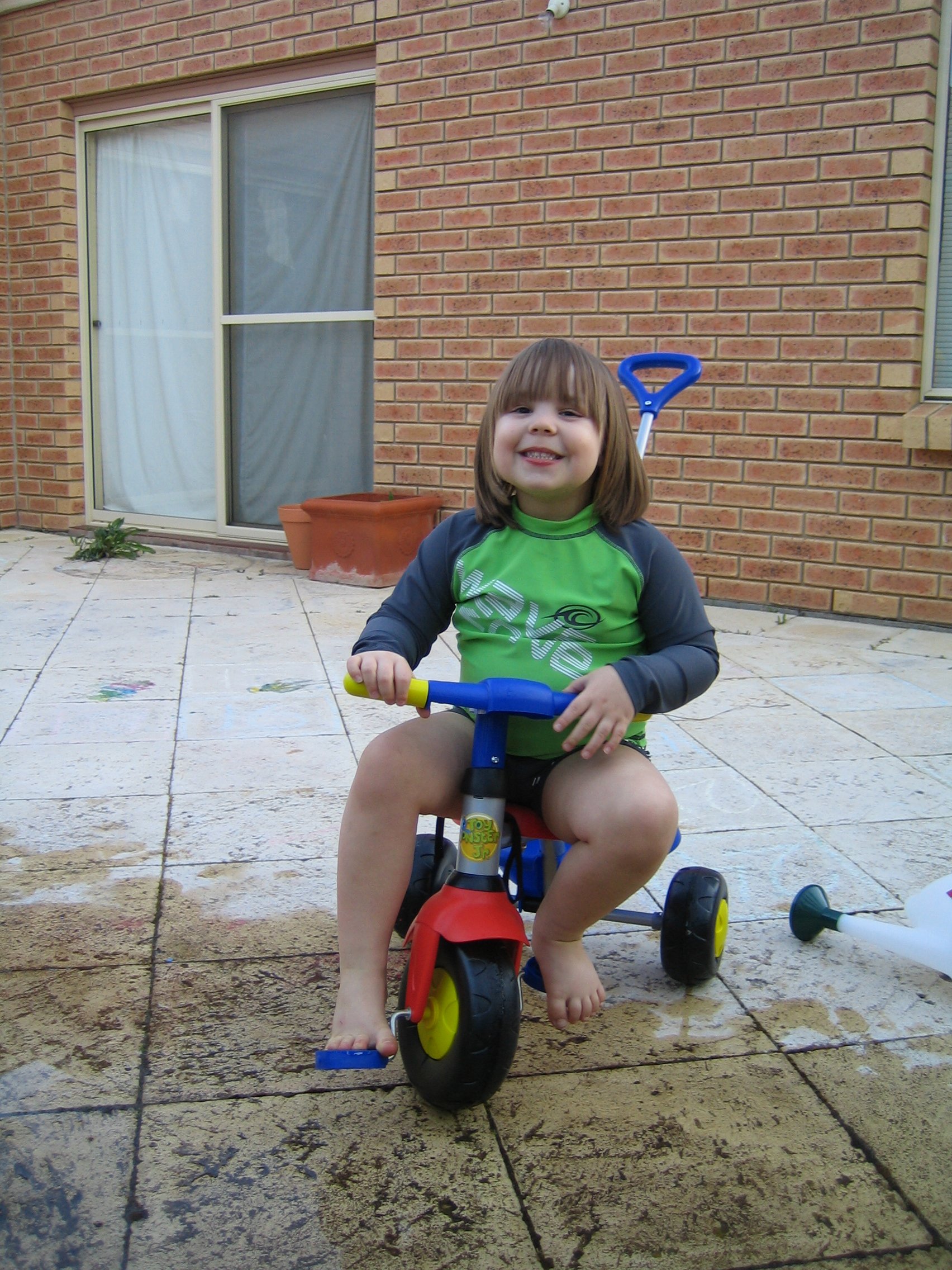 Me trying out Emily's trike on 24 Aug 2007