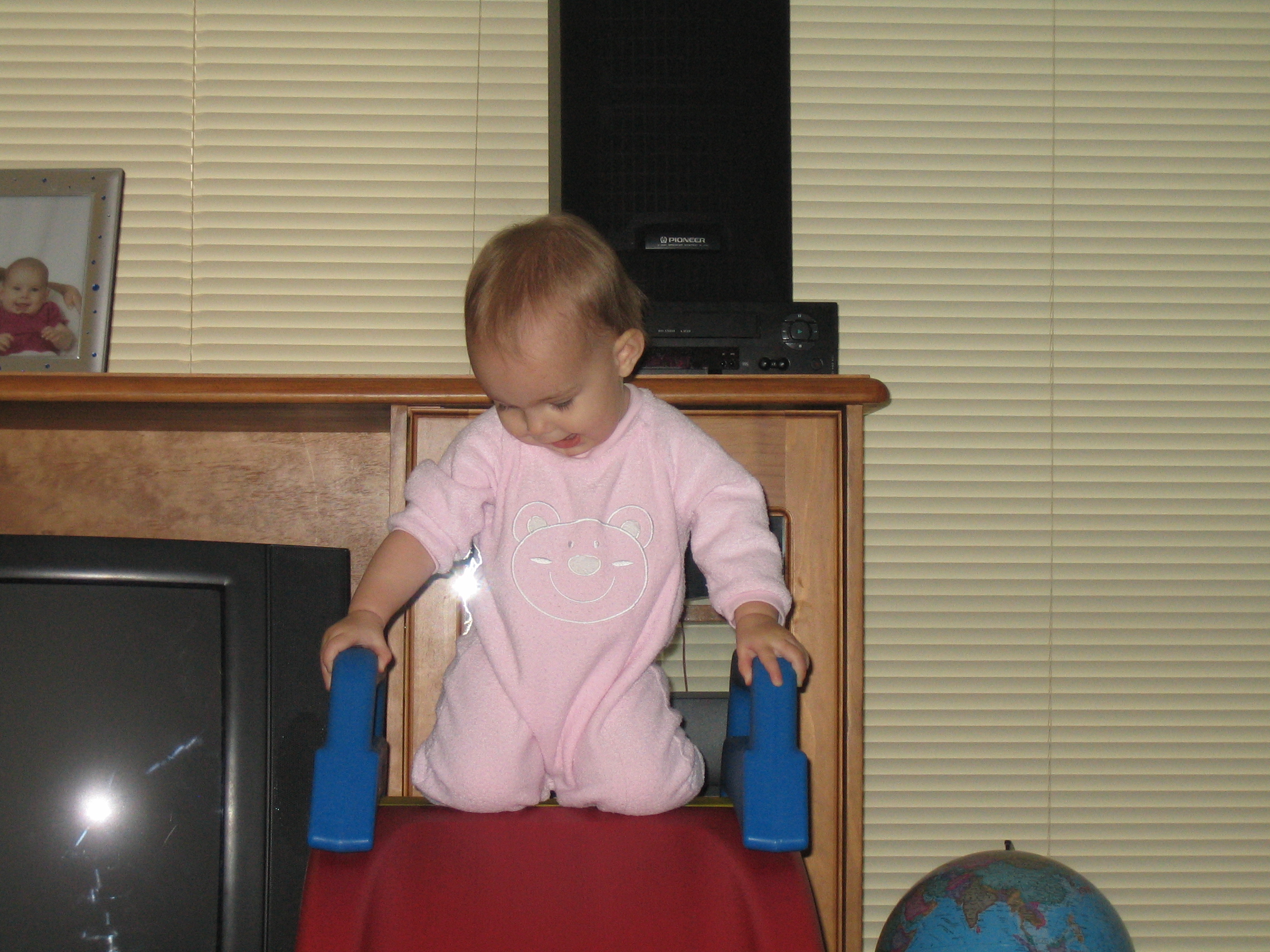 Me getting to the top of the slide stairs by myself on 6 Jul 2007