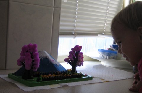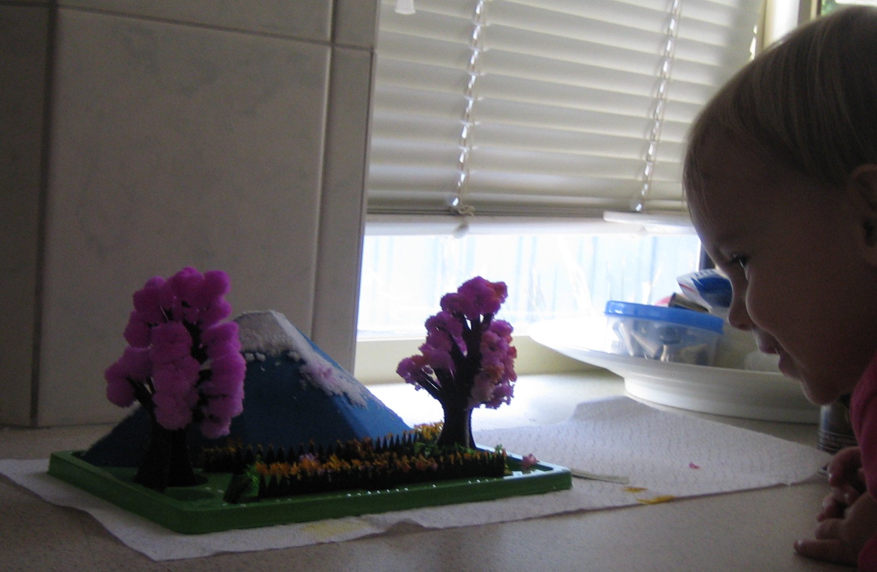 Emily watching our magic crystal garden grow on 1 Apr 2008